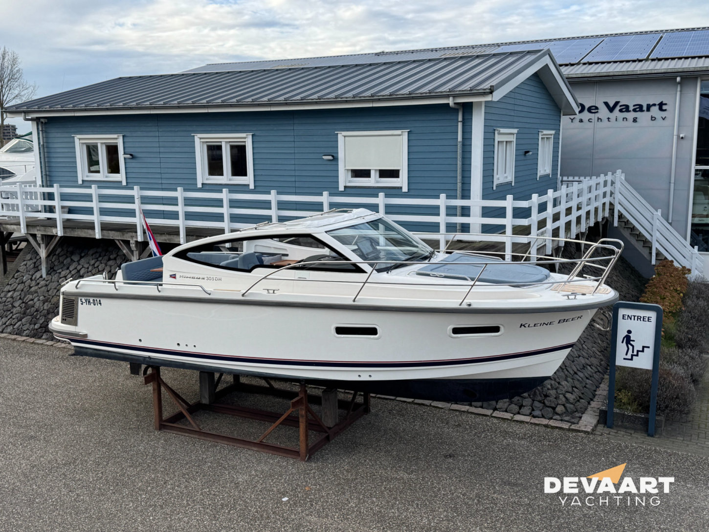 Nimbus 305 Coupé bien entretenu avec Volvo Penta D3-220 cv, équipé d'un propulseur d'étrave et de poupe, el. treuil d'ancre d'étrave, pont en teck (sauf passavent bâbord), auvent de cockpit et taud protection pare-brise (gris), chauffage, projecteur, klaxon. Les coussins intérieurs et extérieurs de ce Nimbus 305 Coupé sont recouverts de couleur bleue, associée à une finition intérieure en acajou. Le carré de ce Nimbus 305 Coupé offre un siège confortable incl. une banquette passager rabattable, un siège pilote avec repose-pieds et une cuisine avec plaque vitrocéramique gaz, réfrigérateur et un grand espace de rangement. Avec sa plate-forme de bain, son pont arrière et son carré à niveau, vous pouvez facilement vous déplacer sur le navire. Vous pouvez accéder au pont latéral tribord via le pont arrière ou via la porte latérale coulissante encastrée à côté du poste de pilotage. Les fenêtres contemporaines offrent au Nimbus beaucoup de lumière naturelle et une vue panoramique dégagée. La porte latérale coulissante affleurante, la porte arrière coulissante donnant sur le pont arrière, l'auvent de cockpit et les puits de lumière du carré qui peuvent être ouverts manuellement, vous permettent d'ouvrir ou de fermer rapidement quelles que soient les conditions météorologiques. À l'avant de ce Nimbus 305 Coupé, il y a un bain de soleil sur le pont avant et un escalier d'étrave rabattable. Sous le pont se trouvent les 2 cabines avec 4 couchettes fixes et une salle de bain avec toilettes et douche électriques. Les matelas de la cabine avant ont des surmatelas. Avec le Nimbus 305 Coupé, une grande zone de navigation et une longue saison de navigation sont à portée de main !